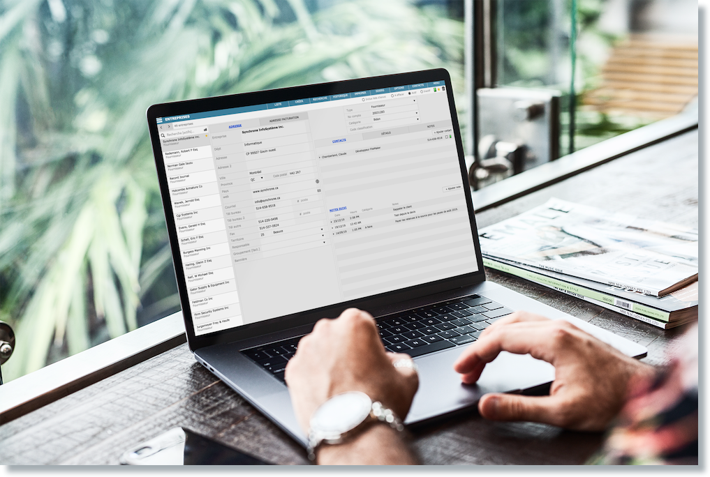 Le système de gestion d’entreprise Synchrone est une solution infonuagique (utilisation sur le cloud) disponible avec abonnement mensuel ou annuel